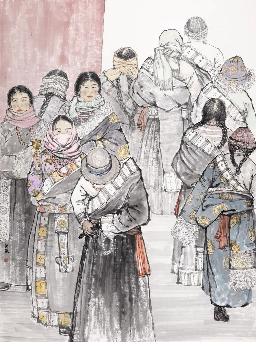 他聚焦于平凡藏民的日常,以细腻的笔触、真挚的情感,勾勒出藏地生活的烟火气与精神魂,既有工笔画的精致灵动,又有写意画的气韵生动,彰显出“新文人画”的独特风范。